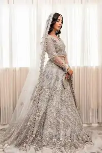 Steel grey Blouse – Frilled Heavy Lehenga – Dupatta