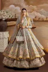 We made festoon bridal Pishwas with the most appropriate beads, embroidery, threads and crystals each of which is the finest of its type. Even though Deemas Fashion offers a vast range of products, in case our customers do not feel pleased, Deemas Fashion provides to make bridal wear within their budget and by every demand of our customers which suits them. Our customers would not have to worry about their time and struggle. All our customers have to do is to visit us or may call us and explain their demands and style, it would be then our duty to make their special day outfit that completely fits their criteria.