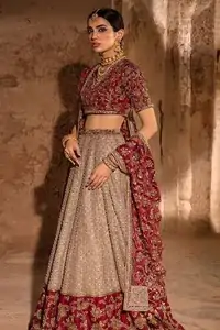 Baraat Reception Bridal Wear Deep Red Blouse – Flare Lehenga